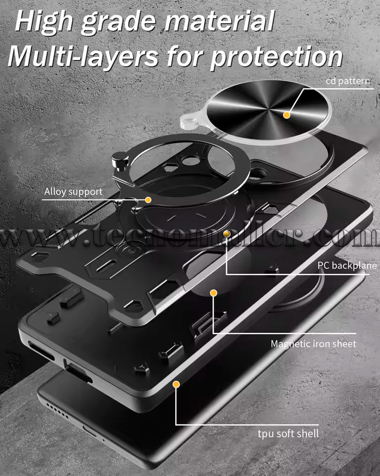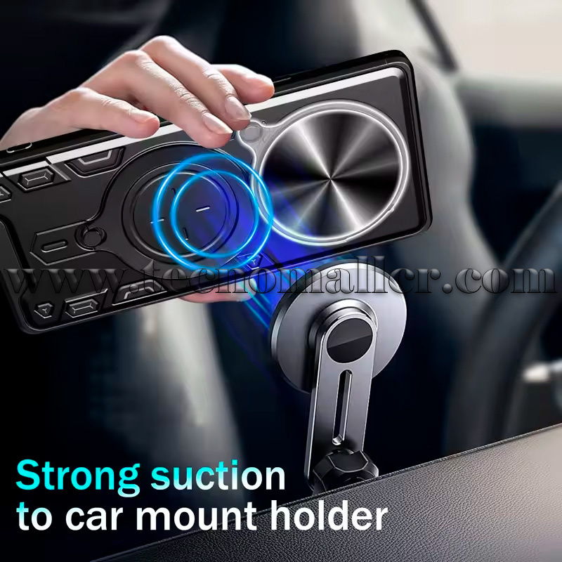 Soporte magnético para automóvil: hay un parche de metal integrado que puede fijar fácilmente tu teléfono directamente al soporte magnético para automóvil (soporte magnético para automóvil no incluido). No soporta carga inalámbrica.