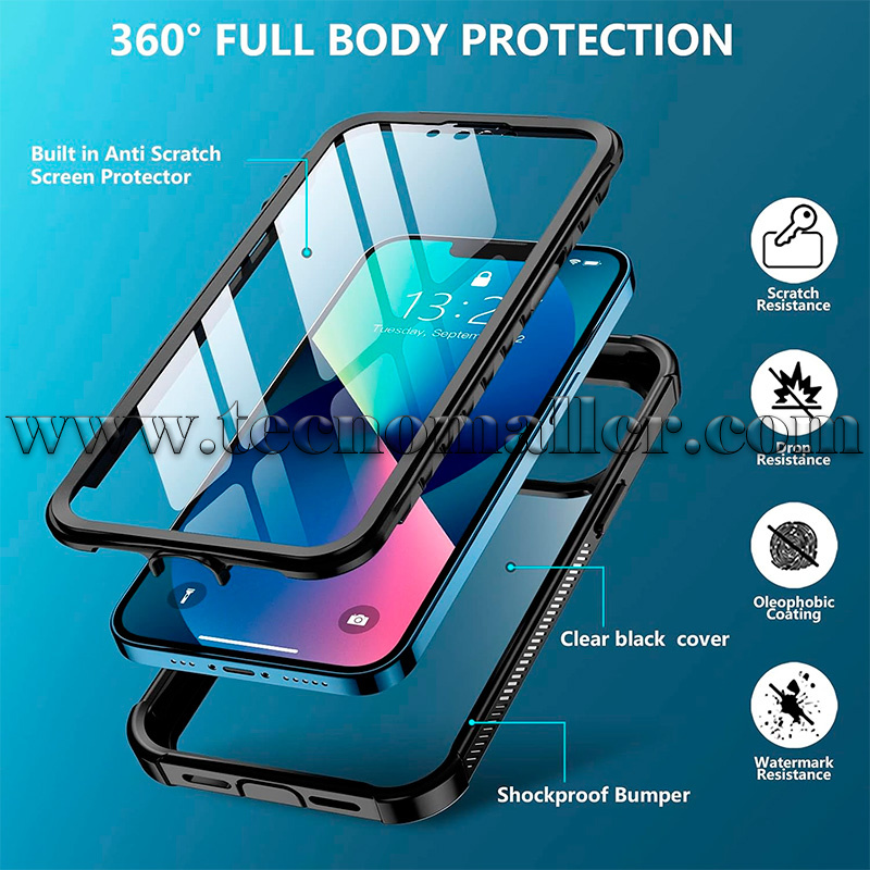 iPhone 13 estuche Red2Fire antigolpes de cuerpo completo 360 con protector de pantalla integrado