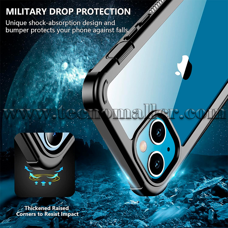 Protección militar contra caídas: La funda protectora para iPhone 13 con diseño de doble capa del protector de pantalla integrado y la cubierta trasera transparente resistente proporciona protección de cuerpo completo de 360° para tu nuevo iPhone. Diseño único de absorción de impactos para dispersar golpes severos, evitar impactos inesperados y arañazos
