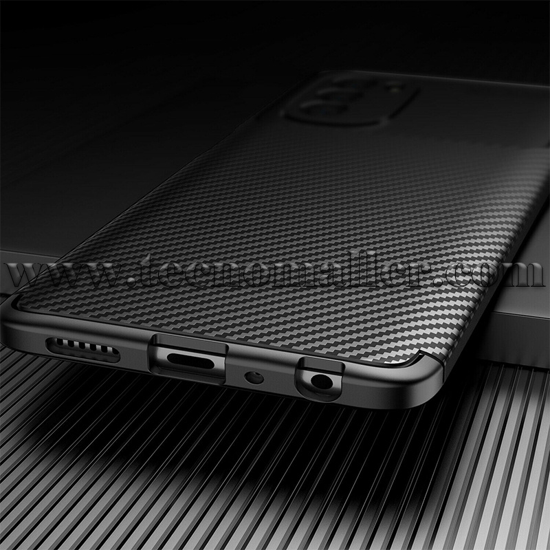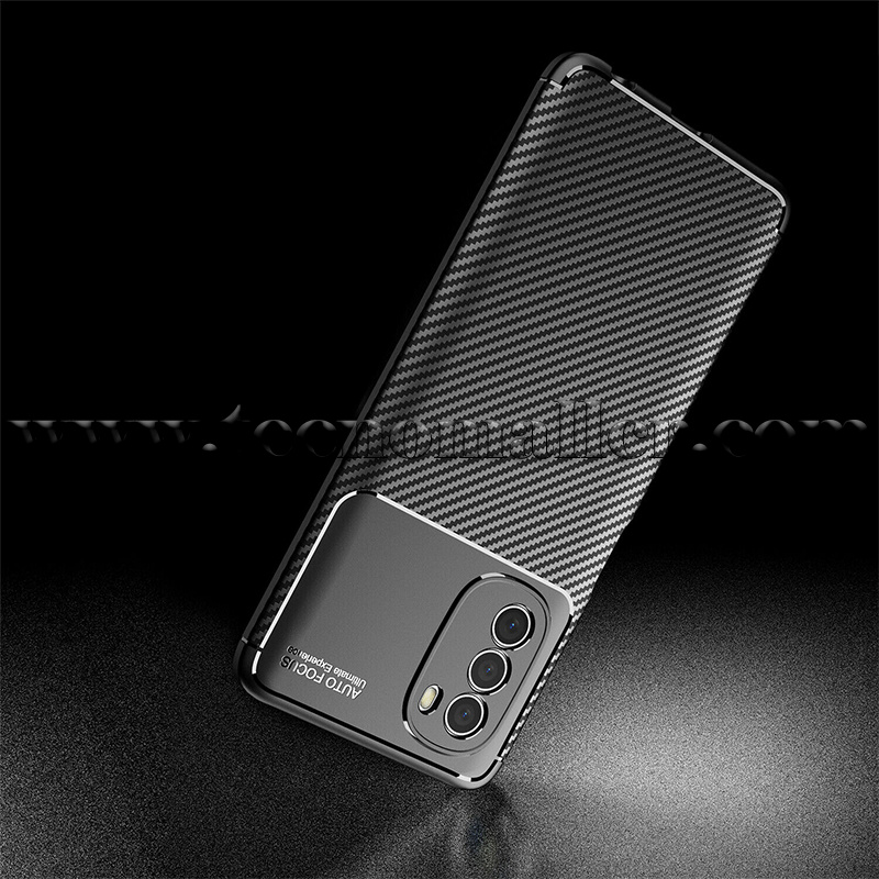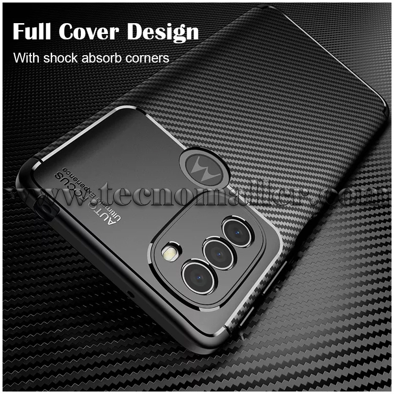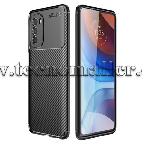 Motorola G51 funda de fibra de carbono flexible, anti huellas y golpes